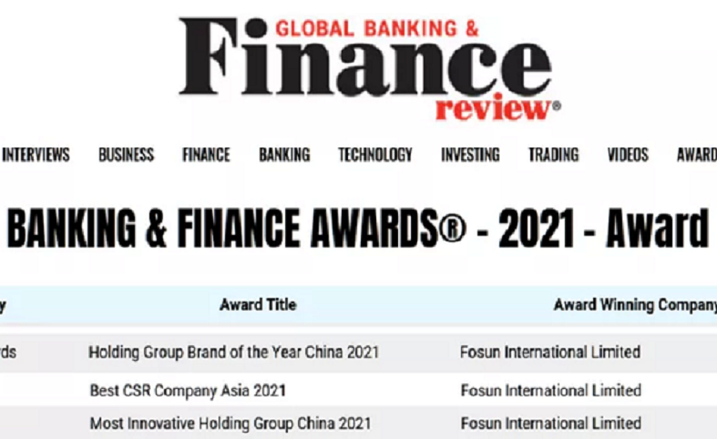 Le 2 août 2021, Fosun International a été informé par Global Banking and Finance Review, un célèbre magazine financier du Royaume-Uni, que Fosun International s'était vu décerner trois prix, à savoir «Corporate Social Responsibility (CSR) Awards - Best CSR Company Asia 2021», «Brand of the Year Awards - Holding Group Brand of the Year China 2021» et «B