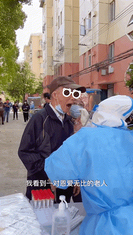 在上海御桥路小区,因为有独居的老人,其中有一个阿姨视力不太好,我就和同伴上门为老人做核酸,他们和爷爷奶奶一样的年纪,临走的时候还不停的说谢谢,说今天做的是核酸自由~特别可爱~